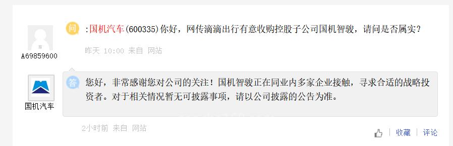 國機(jī)汽車回復(fù)網(wǎng)友的提問,圖片來源:上證e互動(dòng)平臺(tái)