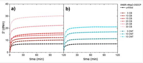 隨著軟致動(dòng)器(soft actuator)等先進(jìn)元件的發(fā)展,不同構(gòu)成的多功能形狀記憶材料受到關(guān)注。研究人員致力于開發(fā)新型智能材料,使其對(duì)光、熱、磁場(chǎng)、電以及水和濕度等各種刺激做出反應(yīng)。González-Jiménez博士解釋:“近年來,人們采取不同的方法,以獲得可在臨時(shí)形狀內(nèi)保持彈性的聚合物,包括具有彈性基質(zhì)液體結(jié)晶彈性體的互穿可結(jié)晶熱塑性網(wǎng)狀物,以及彈性體和小分子添加劑的混合物?!?BR>       該團(tuán)隊(duì)致力于三個(gè)主要目標(biāo)。第一,評(píng)估引入導(dǎo)電填料(碳黑)和納米填料(多壁碳納米管)對(duì)與共價(jià)鍵和離子鍵交聯(lián)的XNBR復(fù)合材料的網(wǎng)絡(luò)結(jié)構(gòu)和形狀記憶性能的影響;第二,通過研究各種填料的粘彈性行為、機(jī)械性能和電學(xué)性能,比較各種填料的強(qiáng)化效率;第三,在使用具有增強(qiáng)熱傳導(dǎo)和電導(dǎo)率的離子彈性體的基礎(chǔ)上,發(fā)展當(dāng)代先進(jìn)應(yīng)用的概念證明。