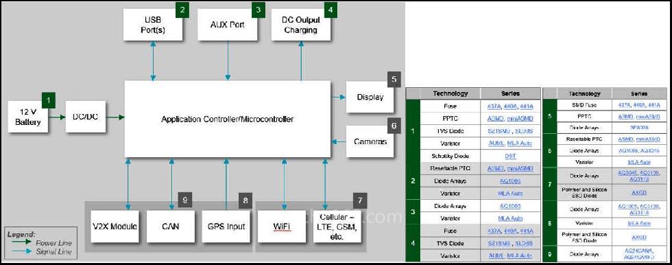 汽車ADAS控制器系統(tǒng)電路保護(hù)框圖及對(duì)應(yīng)產(chǎn)品系列