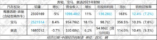 盡管受到疫情、“缺芯”等沖擊,但BBA仍然迎來收獲滿滿的一年,充分展現(xiàn)各自轉(zhuǎn)型戰(zhàn)略所取得的階段性成果。其中,寶馬繼續(xù)領(lǐng)跑BBA汽車銷量,奔馳則在盈利能力上當(dāng)仁不讓。相比之下,奧迪與兩位德國老鄉(xiāng)有著較大差距。