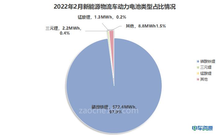 動(dòng)力電池類(lèi)型方面,磷酸鐵鋰電池的裝車(chē)量為572.4MWh,市占比達(dá)97.9%;三元鋰電池裝車(chē)量為2.15MWh,占比為0.4%;錳酸鋰電池裝車(chē)量為1.3MWh,占比0.2%;其他未知鋰電池8.8MWh,占比1.5%。
