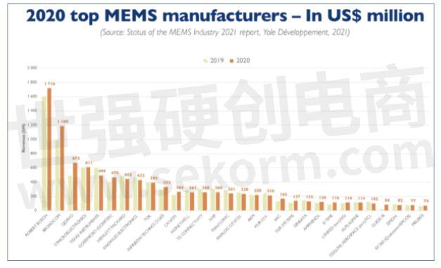 在全球17家主流MEMS芯片代工廠,除了寶島臺灣的臺積電、世界先進、聯(lián)電等傳統(tǒng)代工廠,中國本土只有賽微電子收購的位于海外瑞典的Silex入榜,再無其他本土MEMS代工廠入圍,可見中國大陸本土傳感器芯片產(chǎn)業(yè)對全球供應(yīng)鏈影響力幾乎為0。