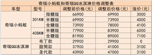 早在3月中旬,在3萬級微型車市場中和宏光MINIEV形成競爭的奇瑞QQ冰淇淋甜筒和圣代兩款車型,就已經(jīng)有過價格調(diào)整,兩款車型雙雙上調(diào)3100元,調(diào)整后的價格區(qū)間為2.99萬-4.70萬元,入門版布丁款價格和MINIEV輕松款套路一樣,價格保持不變。
