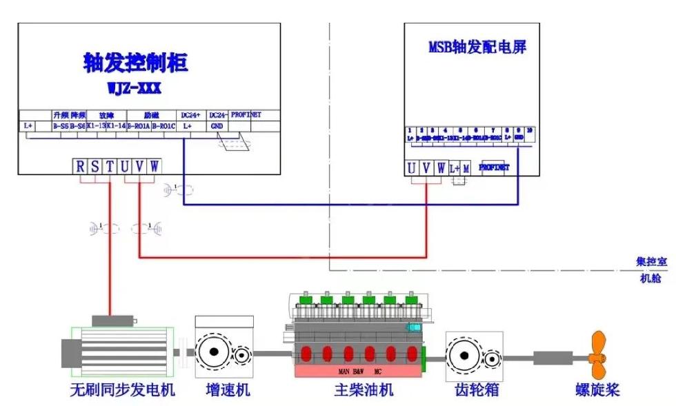 這是恒頻恒壓系統(tǒng)在船用電源領(lǐng)域的一個新方案,既有軸帶發(fā)電機(jī)的節(jié)能效果,又有穩(wěn)定電壓輸出,給船上的用電設(shè)備實現(xiàn)不間斷供電。