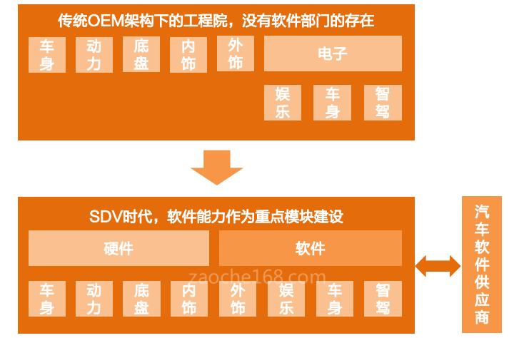 從這里不難發(fā)現(xiàn),傳統(tǒng)整車(chē)廠(chǎng)不僅僅是技術(shù)方面的改變,對(duì)于部門(mén)架構(gòu)也要做對(duì)應(yīng)的調(diào)整。