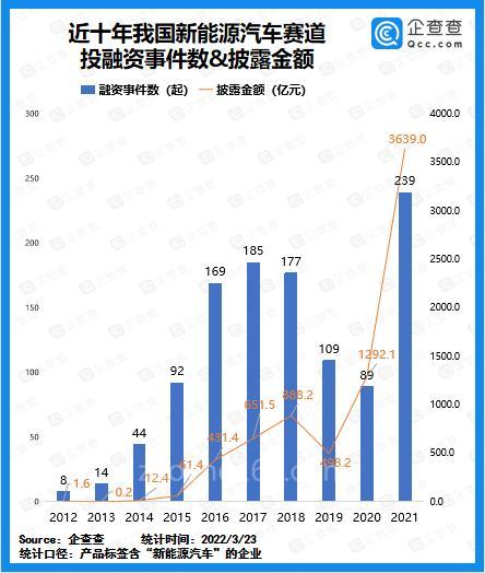 新能源汽車賽道近十年融資情況;圖片來源:企查查