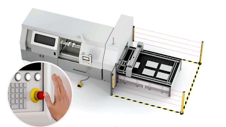 當(dāng)設(shè)備發(fā)生緊急情況時,操作人員可以通過急停按鈕開關(guān),來迅速可靠地切斷危險源,并使其進入安全狀態(tài),這也是保護人和設(shè)備的一種補充防護措施。