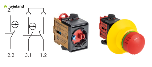 除了2組紅色的常閉觸點外還有一組藍色的常開觸點,這就是威瑯急停設(shè)計的巧妙之處。