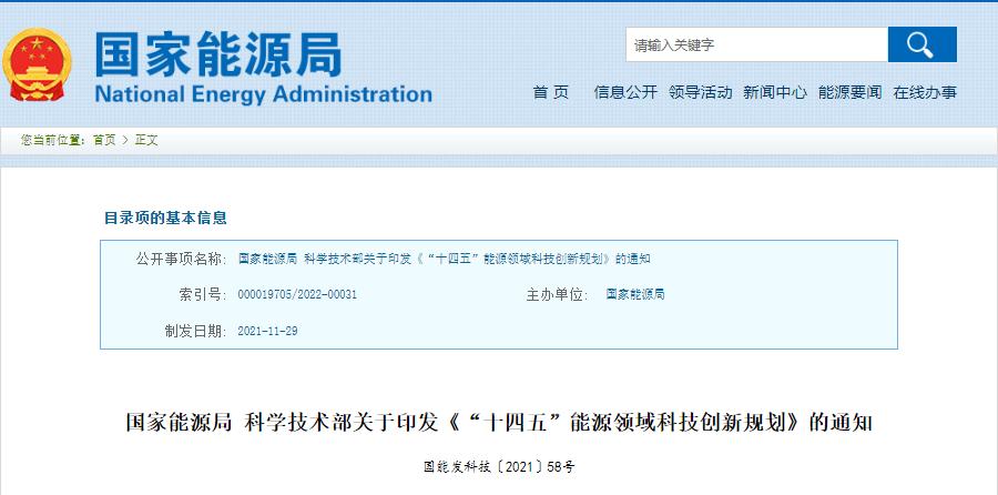 4月2日,國家能源局、科學(xué)技術(shù)部發(fā)布關(guān)于印發(fā)《“十四五”能源領(lǐng)域科技創(chuàng)新規(guī)劃》的通知。
