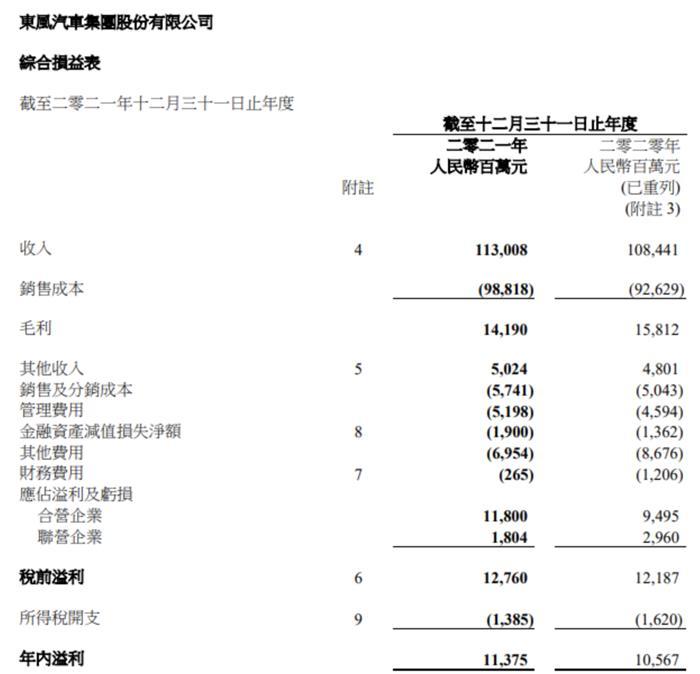 3月31日,東風(fēng)汽車集團(tuán)股份有限公司發(fā)布2021年財(cái)報(bào)數(shù)據(jù)顯示,集團(tuán)持續(xù)優(yōu)化管理體系,經(jīng)營保持高質(zhì)量,各項(xiàng)關(guān)鍵財(cái)務(wù)指標(biāo)良好。收入同比增長(zhǎng)4.2%,全年稅前溢利127.60億元,同比增長(zhǎng)4.7%,稅前利潤率達(dá)11.3%,歸母凈利潤達(dá)114億元,同比增長(zhǎng)5.8%。