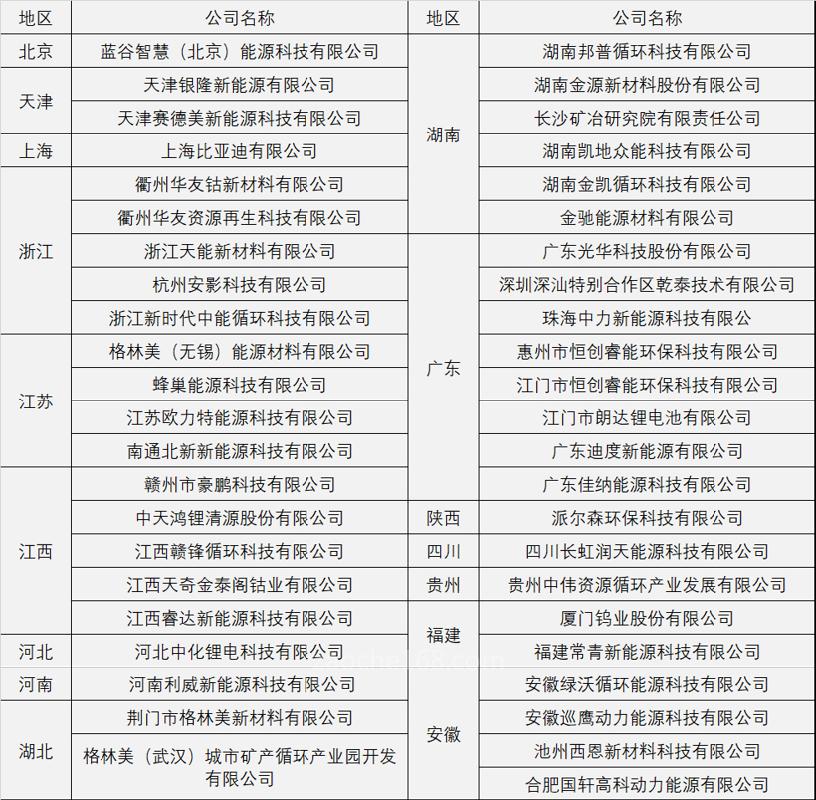 工信部于2016年制定了《新能源汽車廢舊動力蓄電池綜合利用行業(yè)規(guī)范條件》,并在2018年9月、2020年12月及2021年11月,先后公布了三批符合條件的企業(yè)名單,被業(yè)內成為動力電池回收白名單。