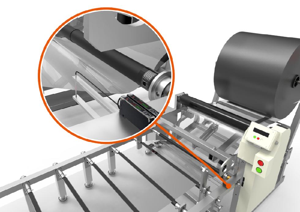 色標(biāo)傳感器用于精確檢測(cè)包裝材料上的密封和切割線。