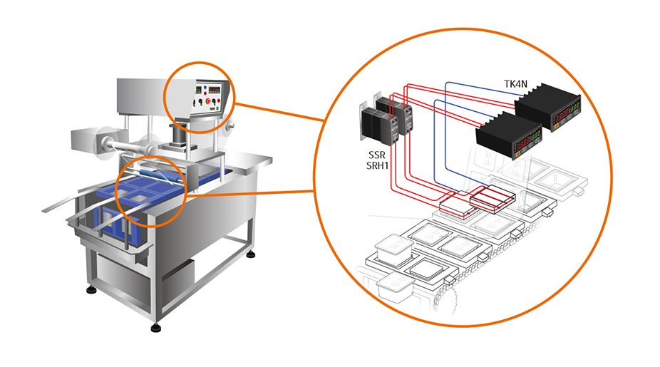 溫度控制器和固態(tài)繼電器用于控制食品容器封口機(jī)的溫度。