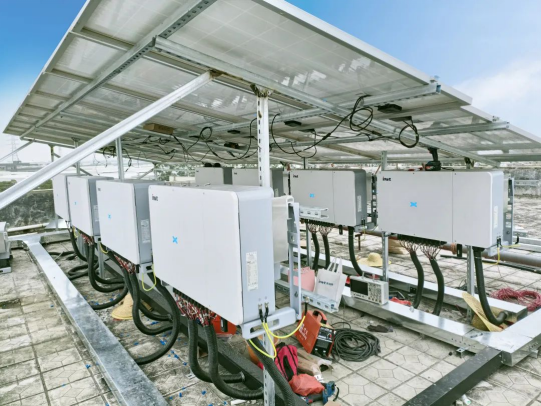 該電站采用了英威騰光伏8臺XG110KTR三相并網(wǎng)逆變器,及2臺XG30KTR三相并網(wǎng)逆變器。