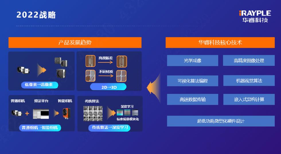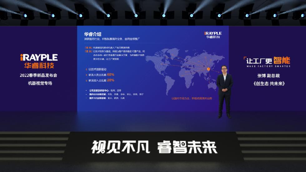 2022年4月12日,以“視見不凡 睿智未來”為主題的華睿科技機器視覺新品發(fā)布會圓滿舉辦。會上,華睿科技副總裁張博為我們介紹了機器視覺產(chǎn)品的業(yè)務(wù)布局以及2022年的戰(zhàn)略方向,并發(fā)布了工業(yè)相機、數(shù)據(jù)采集卡、智能相機、算法平臺等新產(chǎn)品、新技術(shù)。機器視覺產(chǎn)業(yè)聯(lián)盟秘書長于曉娟女士分享了中國2021年中國機器視覺市場規(guī)模和發(fā)展趨勢的行業(yè)報告。