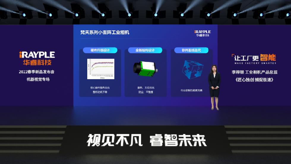 華??萍脊I(yè)相機產(chǎn)品總監(jiān)李梓銀在本次發(fā)布會上帶來了“匠心獨創(chuàng) 捕捉極速”為主題的新品介紹。她表示:“相機成像系統(tǒng)作為視覺檢測的核心模塊,正在不斷滿足行業(yè)高分辨率,高幀率,高畫質(zhì)的要求。全新推出的小尺寸相機搭載CXP-6接口,使小分辨率相機也擁有更高幀率,檢測效率不斷提升,完美應(yīng)用于鋰電、半導(dǎo)體、AOI等行業(yè)。同時也根據(jù)不同行業(yè)應(yīng)用開發(fā)了具有行業(yè)屬性的特色功能,如超短曝光、輪詢、逐點FFC等。