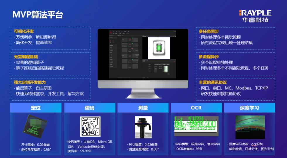 華??萍紮C器視覺產(chǎn)品從圖像采集、算法處理、圖像傳輸再到軟件控制,可提供全系列硬件視覺感知單元和視覺算法平臺,擁有幾百件的發(fā)明專利,保證了技術(shù)的自主性和領(lǐng)先性。從18年到現(xiàn)在,算法平臺MVP已經(jīng)發(fā)布了3.0版本,擁有1500多個自主開發(fā)的基礎(chǔ)算子,組合成了幾百種算法工具。針對行業(yè)的多種需求,華??萍几鶕?jù)自身的技術(shù)可快速提供定制化的軟、硬件服務(wù),滿足客戶需求,以全域感知、工業(yè)互聯(lián),賦能千行百業(yè)。