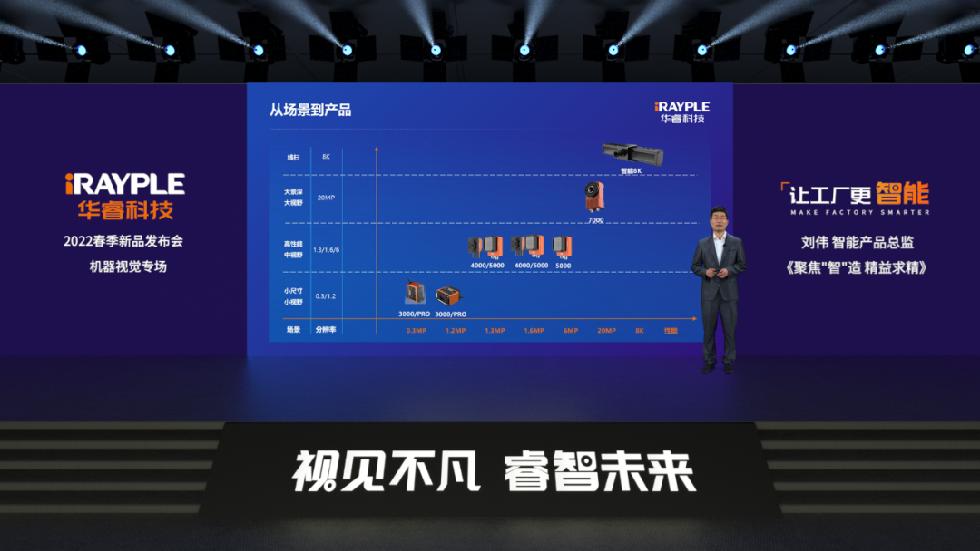 華??萍贾悄芟鄼C產(chǎn)品總監(jiān)劉偉在本次發(fā)布會上以“聚焦‘智’造 精益求精”為主題的新品。他表述:“為了更好的滿足智能制造和信息追溯的快速發(fā)展,服務(wù)于精益智造和精準(zhǔn)識別”,本次隆重推出智能讀碼器、智能相機 、3D相機三大類新產(chǎn)品。