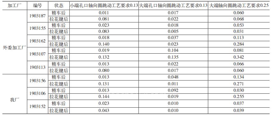 表1 拉花鍵前后軸向圓跳動檢測數(shù)據(jù) (單位:mm)