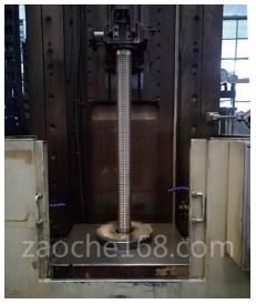 (3)拉花鍵對軸向圓跳動影響的原因分析及工藝驗證 排除精車及感應(yīng)淬火工序為軸向圓跳動超差的主要原因后,重點排查拉花鍵工序?qū)S向圓跳動的影響。我廠拉花鍵工序所用設(shè)備為立式拉床,拉床局部如圖2所示。工作時,將工件大端端面朝下放置在拉床工作臺上,拉刀以工件內(nèi)孔做定位導(dǎo)向,刀夾松開刀柄,刀具呈懸臂狀,絲杠將通過螺母的旋轉(zhuǎn)運(yùn)動轉(zhuǎn)換為拉刀的直線運(yùn)動,完成拉花鍵加工。