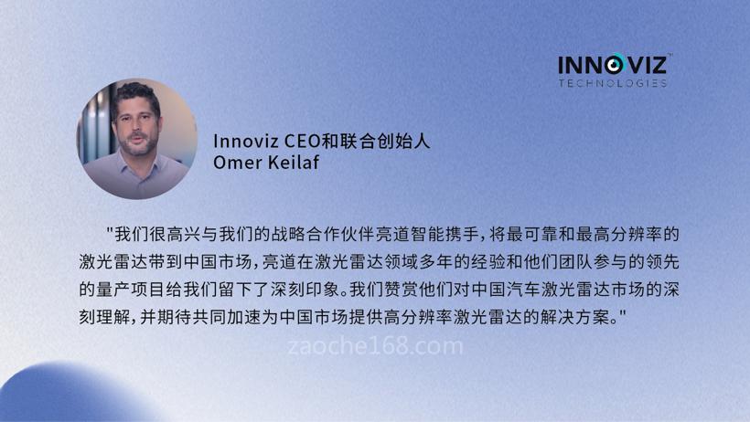 "我們很高興與我們的戰(zhàn)略合作伙伴亮道智能攜手,將最可靠和最高分辨率的激光雷達帶到中國市場", Innoviz的首席執(zhí)行官和聯(lián)合創(chuàng)始人Omer Keilaf說,"亮道在激光雷達領(lǐng)域多年的經(jīng)驗和他們團隊參與的領(lǐng)先的量產(chǎn)項目給我們留下了深刻印象。我們贊賞他們對中國汽車激光雷達市場的深刻理解,并期待共同加速為中國市場提供高分辨率激光雷達的解決方案"。