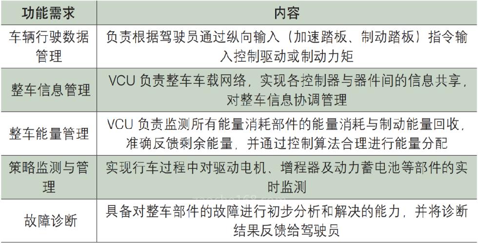 表 1 增程式電動(dòng)汽車整車控制系統(tǒng)功能需求