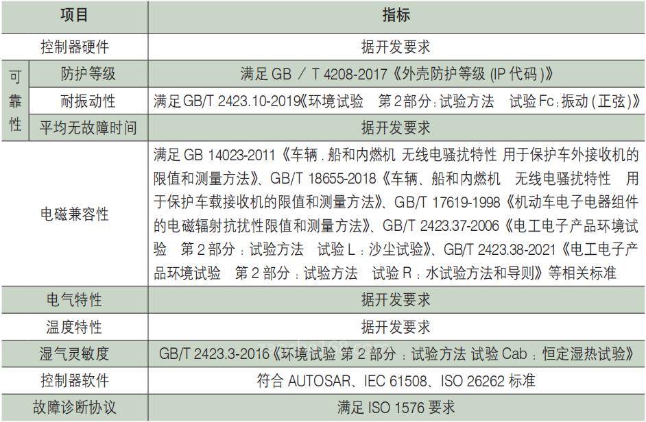 表 2 整車控制器(VCU)關(guān)鍵技術(shù)指標(biāo)