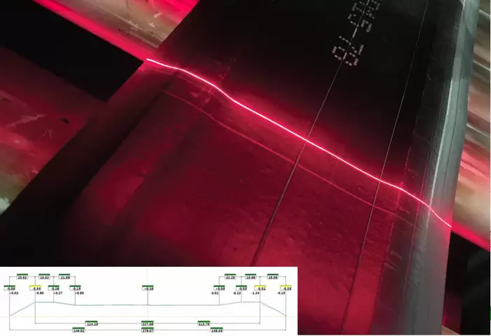 如:胎面的厚度輪廓、總寬、肩寬、中寬、肩厚、中厚等關(guān)鍵尺寸測(cè)量