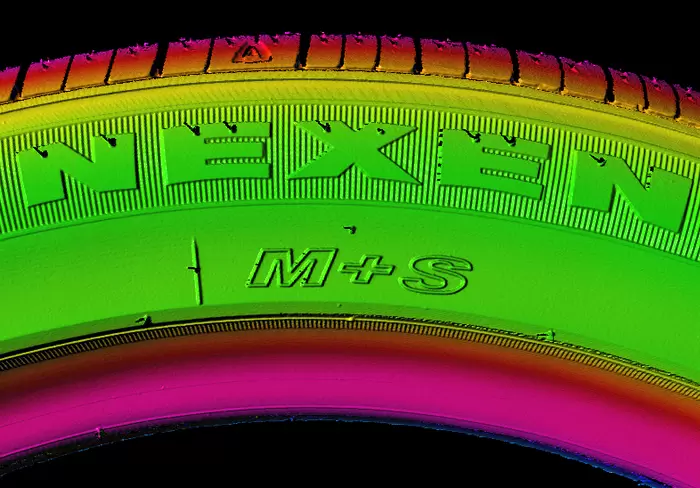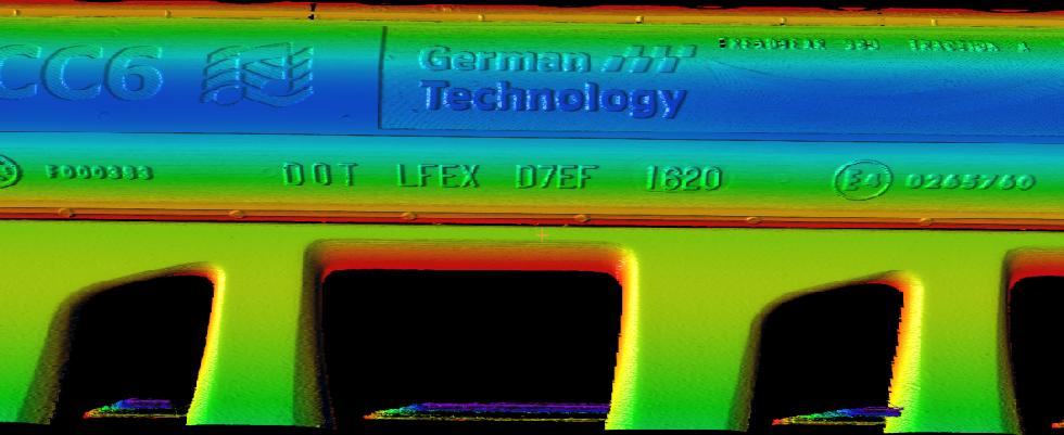但由于輪胎是黑色橡膠制品,即便有外部光源的情況下也很難呈現(xiàn)一定的對(duì)比度,因此傳統(tǒng)2D相機(jī)用于輪胎檢測(cè)會(huì)比較棘手。SICK 推出的3D相機(jī)則可以突破這一劣勢(shì),它可以免受樣品表面顏色的影響,通過激光三角原理獲取清晰的輪胎表面高度圖像及強(qiáng)度圖像,從而為輪胎行業(yè)的視覺檢測(cè)解決了難題。