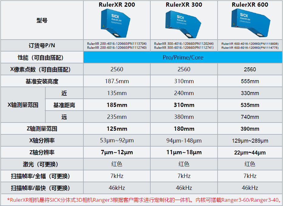 為了適用大部分輪胎的尺寸范圍,SICK推薦使用RulerXR 200和RulerXR 300型號(hào)的3D相機(jī),如有更大的視野需求,可以選擇RulerXR 600相機(jī)。
