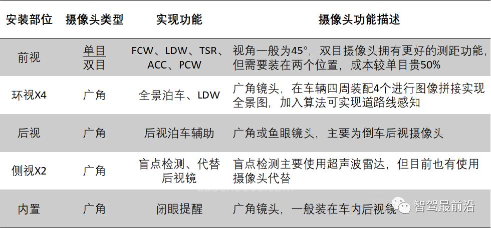本文中,智駕最前沿采用的是根據(jù)攝像頭安裝位置,及其視野不同,進行分類。一般分為前視、后視、環(huán)視、側視以及內視攝像頭。小編整理了部分攝像頭在車載上的應用介紹,以供參考;