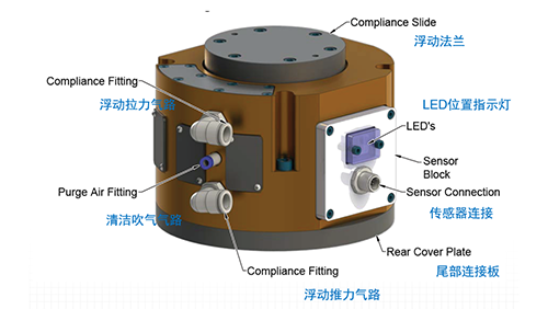 該浮動(dòng)單元的末端法蘭可以實(shí)現(xiàn)12mm的直線浮動(dòng),法蘭末端可以連接多種打磨工具,機(jī)器人借助PCFC可以實(shí)現(xiàn)恒力浮動(dòng)打磨。
