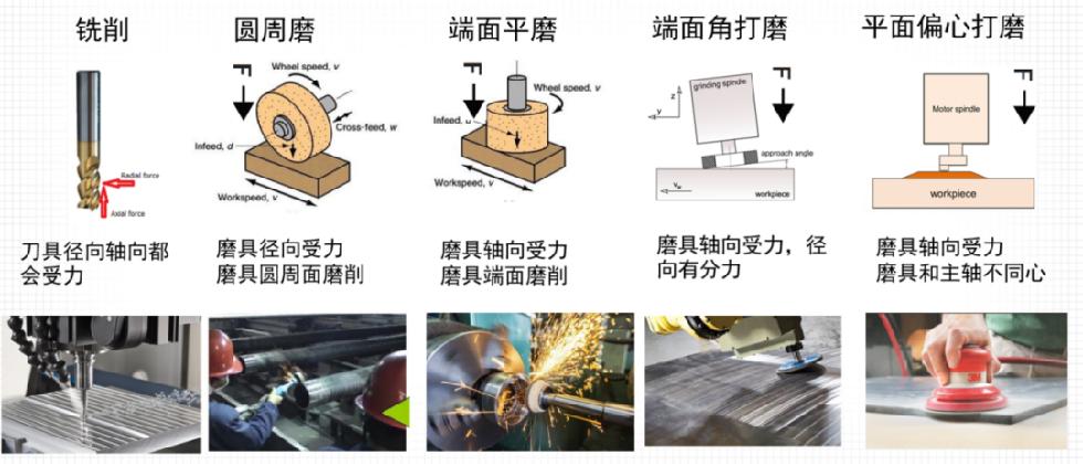 任何打磨工藝,都是先選擇磨具,再選擇動(dòng)力工具,再選擇浮動(dòng)方向。也就是說(shuō),先要選擇磨具的形狀,直徑,打磨面是圓周面或者端面,然后在選擇是直向電主軸,還是角向打磨主軸。再規(guī)劃工具怎么浮動(dòng),即軸向浮動(dòng)或者徑向浮動(dòng)。