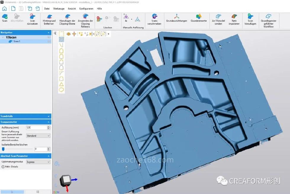 在本案例中,必須掃描一個(gè)未完成的發(fā)動(dòng)機(jī)模型設(shè)備部件,然后再掃描一個(gè)已完成的部件。Duisburger Modellfabrik GmbH 公司的每個(gè)項(xiàng)目理論上都遵循以下模式: