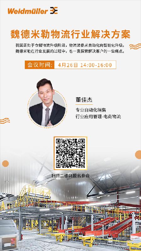 4月26日14:00-16:00,魏德米勒行業(yè)應(yīng)用管理專家將從電商物流行業(yè)特征,以及內(nèi)部物流應(yīng)用場(chǎng)景需求著手,面向廣大行業(yè)客戶傾情介紹適用于倉(cāng)儲(chǔ)、輸送、運(yùn)輸、分揀和處理等核心環(huán)節(jié)的前瞻性電氣聯(lián)接產(chǎn)品和物聯(lián)網(wǎng)解決方案,為電商物流行業(yè)的生產(chǎn)和運(yùn)輸提供創(chuàng)新之選,幫助客戶發(fā)現(xiàn)新的商業(yè)模式。