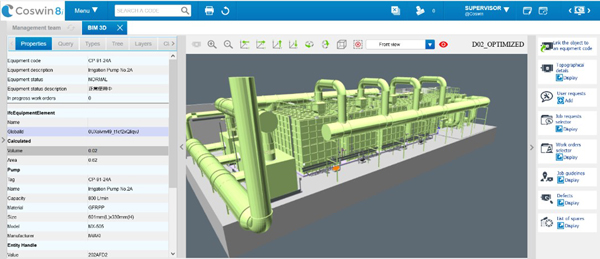 香港首座大型有機資源回收中心選擇部署Coswin 8i維護管理系統(tǒng)。在這座日處理量達200公噸的有機資源回收中心的建設(shè)期間,喜科負責管理技術(shù)數(shù)據(jù)庫的準備工作。2018年項目投運的同時該系統(tǒng)同步上線運行。盡管最初建立BIM模型和搭建維護數(shù)據(jù)庫的工作沒有同步開展,但通過bluebee?云計算平臺,最終實現(xiàn)了與三維模型的交互功能,可直接關(guān)聯(lián)所有運維數(shù)據(jù)和記錄。