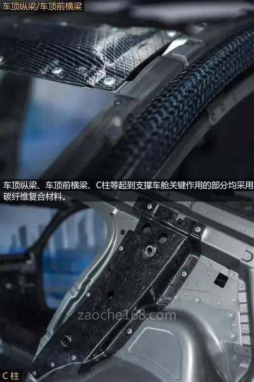 碳纖維并非赤裸地展現(xiàn)在面前,而是一種Carbon Core的技術(shù),也就是碳纖維內(nèi)核。新的技術(shù)與材料的使用,白車身減重40kg,整車輕了130kg。