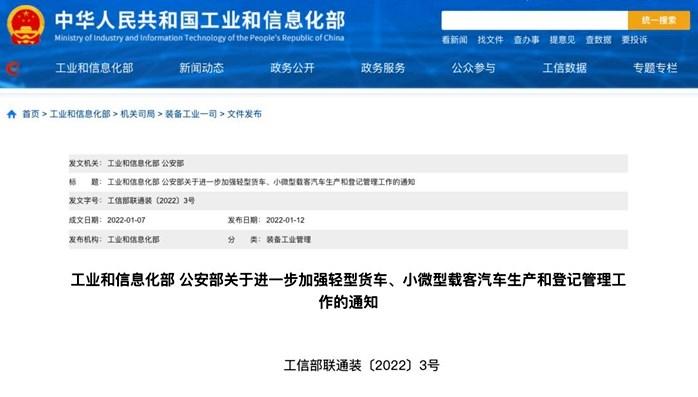 根據(jù)工業(yè)和信息化部、公安部聯(lián)合發(fā)布的《關(guān)于進(jìn)一步加強(qiáng)輕型貨車、小微型載客汽車生產(chǎn)和登記管理工作的通知》(下簡稱《通知》),3月1日起,生產(chǎn)企業(yè)應(yīng)立即停止生產(chǎn)不符合通知《輕型貨車、小微型載客汽車安全技術(shù)規(guī)范》要求的在產(chǎn)產(chǎn)品,相關(guān)機(jī)構(gòu)應(yīng)立即停止接收相關(guān)產(chǎn)品合格證信息。