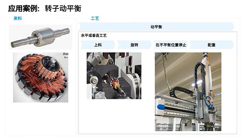 轉(zhuǎn)子動(dòng)平衡、定子繞線、轉(zhuǎn)子入殼等自動(dòng)搬運(yùn)工藝段,對(duì)運(yùn)動(dòng)的精確性要求較高。舉例而言,在把轉(zhuǎn)子放到動(dòng)平衡機(jī)上進(jìn)行檢測(cè),完成后回到產(chǎn)線的過程中,涉及到的上線、下線、旋轉(zhuǎn)等動(dòng)作,要求整個(gè)過程精準(zhǔn)且快速的抓取,并提高整個(gè)抓取運(yùn)動(dòng)節(jié)拍的快速性。