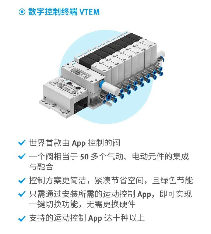 此外,在扁線成型等工藝中,需要控制尺寸的一致性,所以會(huì)有一個(gè)壓裝成型工藝。Festo為其量身打造的氣動(dòng)比例壓力調(diào)節(jié)系統(tǒng),通過VTEM閥島,可輸出16路獨(dú)立比例壓力,提升產(chǎn)能,有效控制設(shè)備成本,并實(shí)現(xiàn)多種功能的豐富擴(kuò)展。