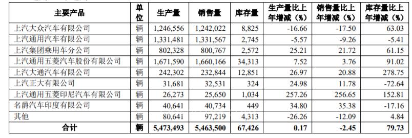 上汽集團(tuán)旗下整車企業(yè)2021年度產(chǎn)銷量情況,圖片來源:上汽集團(tuán)2021年財報