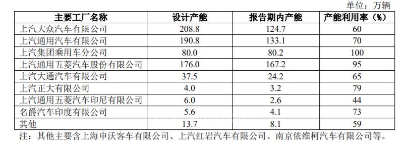 上汽集團(tuán)旗下整車企業(yè)2021年度產(chǎn)能利用情況,圖片來源:上汽集團(tuán)2021年財報