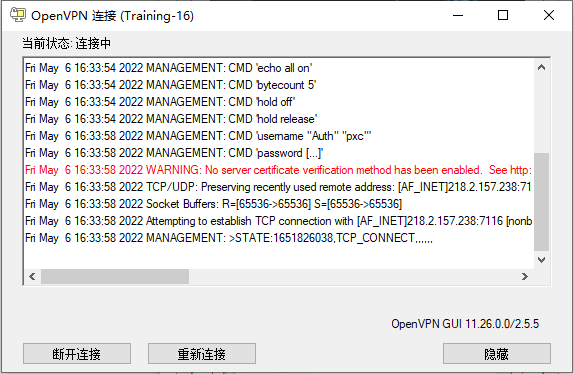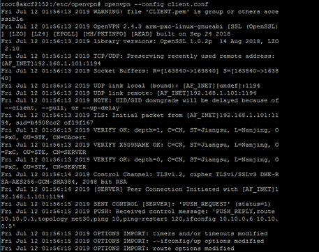 隨后我們就可以通過設(shè)置CA證書,密鑰,配置文件并指令啟動(dòng)OpenVPN與其他設(shè)備建立VPN連接。