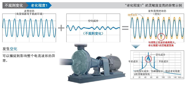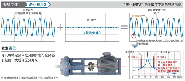 可從影響電機(jī)旋轉(zhuǎn)軸的頻率成分中,明顯地捕捉特定的頻率成分并轉(zhuǎn)換成數(shù)值,因此適用于監(jiān)視定期發(fā)生的異常。特別是在有變頻器干擾的環(huán)境下,也可以高靈敏度地檢測(cè)異常。
