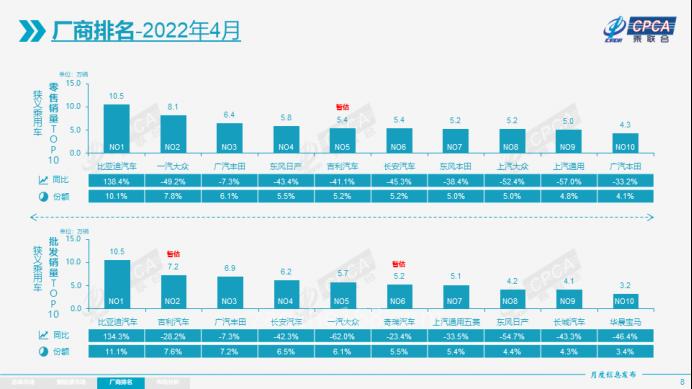 綜合而言,自主品牌正在逐步走強(qiáng),這從3月長安汽車和4月比亞迪汽車占據(jù)乘用車領(lǐng)軍位置就可看出。