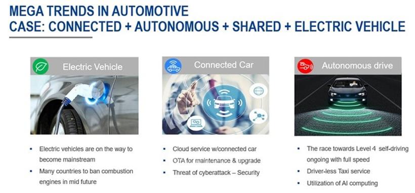 從傳統(tǒng)汽車設(shè)計(jì)向C.A.S.E.(代表未來(lái)汽車的連接性、自主性、共享性、電氣化的縮寫(xiě))推進(jìn)的趨勢(shì),要求汽車內(nèi)的整體計(jì)算性能和通信負(fù)荷呈指數(shù)增長(zhǎng)。