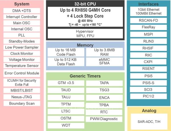 瑞薩的RH850/U2A MCU(微控制器單元)被設(shè)計(jì)為高端車身和底盤(pán)應(yīng)用的跨域平臺(tái),以滿足日益增長(zhǎng)的將多種應(yīng)用集成到單個(gè)芯片的需求?;?8納米工藝技術(shù),32位RH850/U2A MCU建立在瑞薩用于底盤(pán)控制的RH850/Px系列和用于車身控制的RH850/Fx系列的關(guān)鍵功能之上,以提供更好的性能。