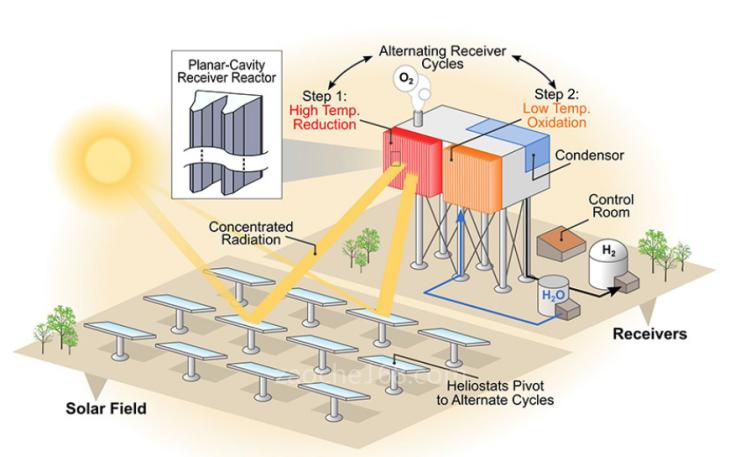 NREL研究人員分析了一種新興的水分解技術(shù)。這種太陽(yáng)能熱化學(xué)制氫(STCH)技術(shù),可能比常用的電解制氫法更節(jié)能。電解法通過(guò)電將水分解成氫和氧。STCH則依賴于一種兩步化學(xué)工藝,首先將金屬氧化物暴露在超過(guò)1400攝氏度的溫度下,然后在更低的溫度下使其與蒸汽再氧化,從而產(chǎn)生氫氣。NREL高級(jí)工程師Zhiwen Ma表示:“該領(lǐng)域非常具有挑戰(zhàn)性,還有很多未解問(wèn)題,主要是從材料的角度?!?BR> 該項(xiàng)研究著眼于系統(tǒng)級(jí)設(shè)計(jì)和技術(shù)經(jīng)濟(jì)分析,以補(bǔ)充正在進(jìn)行的材料研發(fā),將可能的材料集成至太陽(yáng)能燃料平臺(tái)中,并支持能源部的HydroGEN項(xiàng)目。HydroGEN項(xiàng)目通過(guò)一系列實(shí)驗(yàn)工作來(lái)發(fā)現(xiàn)材料,包括機(jī)器學(xué)習(xí)、缺陷計(jì)算和開(kāi)發(fā)新的鈣鈦礦材料。研究人員需要確定鈣鈦礦能夠承受必要的高溫,同時(shí)實(shí)現(xiàn)性能目標(biāo)。