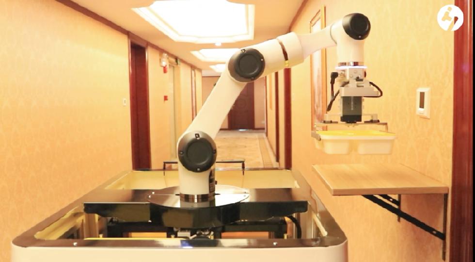 大族機器人聯(lián)合合作伙伴,推出了核酸檢測機器人以及無接觸配餐機器人,為走向戰(zhàn)疫最終勝利,貢獻出強大的力量。以隔離酒店中無接觸配餐機器人為例,機器人采用激光SLAM導航的技術實現(xiàn)自主定位、自動避障、自主配餐,避免人員接觸造成交叉感染。同層40盒菜只需要約30分鐘就可以配送完成,一次可管理兩層80個房間,1小時配送完成。