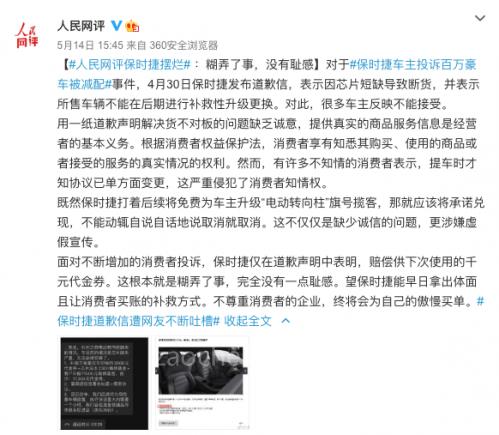 望保時捷能早日拿出體面且讓消費者買賬的補救方式。不尊重消費者的企業(yè),終將會為自己的傲慢買單。